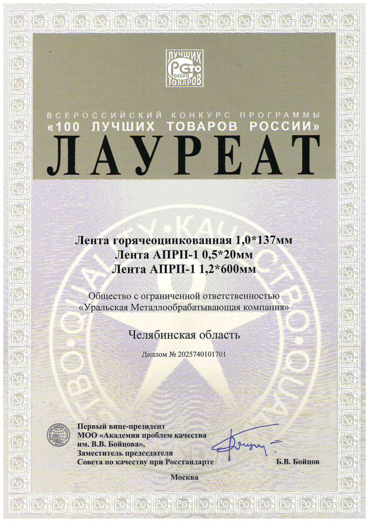 "Уральская Металлообрабатывающая Компания" приняла участие в региональном этапе Всероссийского конкурса "100 лучших товаров России".